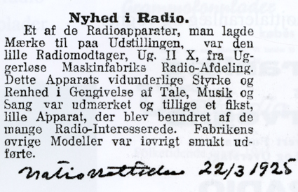 Christian X skal have udtalt, at han ”kun vil have det bedste – en radio fra UG radio” – eller som det hed på det tidspunkt: En radio fra Uggerløse Maskinfabriks Radio Afdeling.